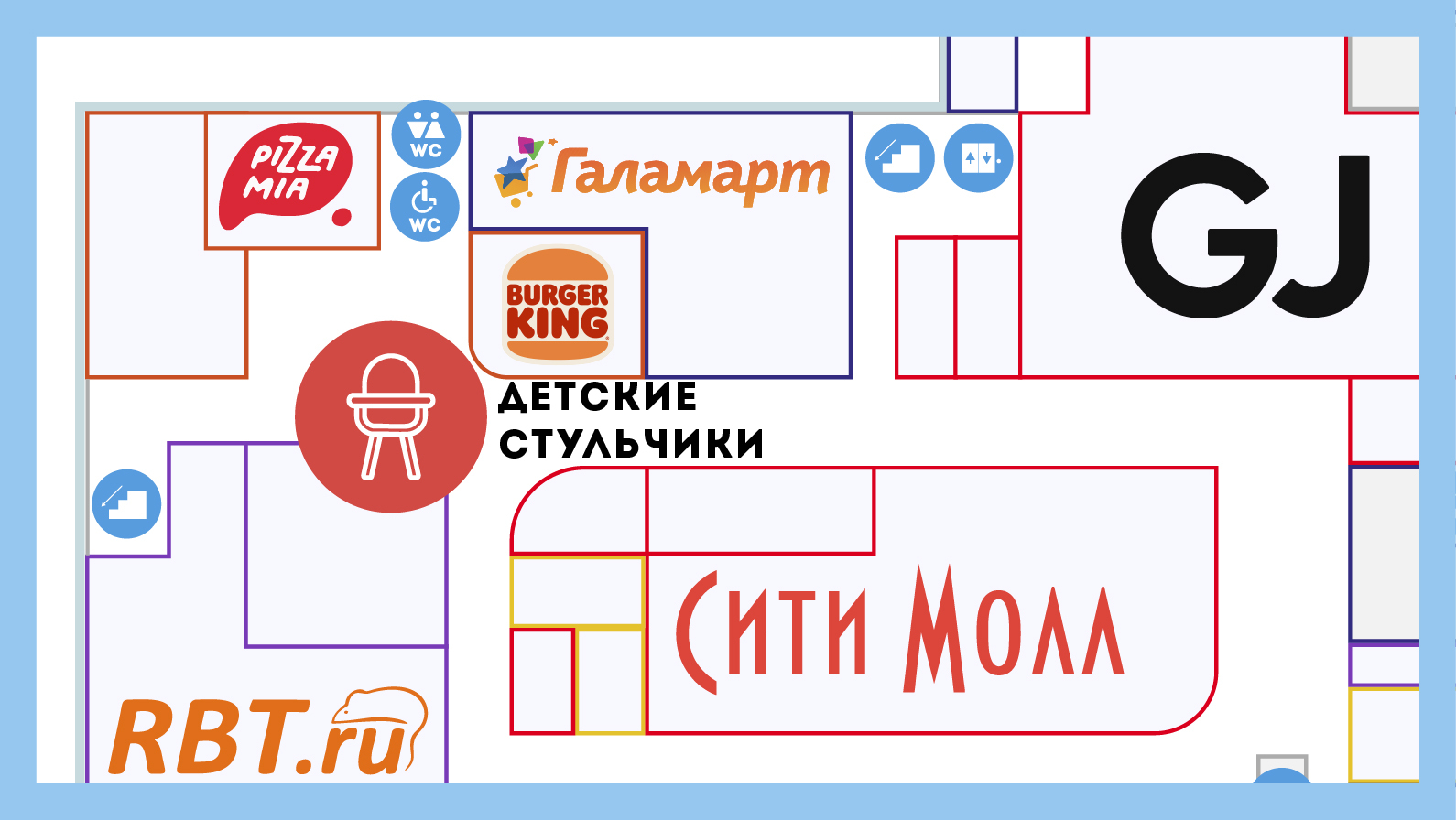Вы можете воспользоваться детским стульчиком для кормления на территории фудкорта