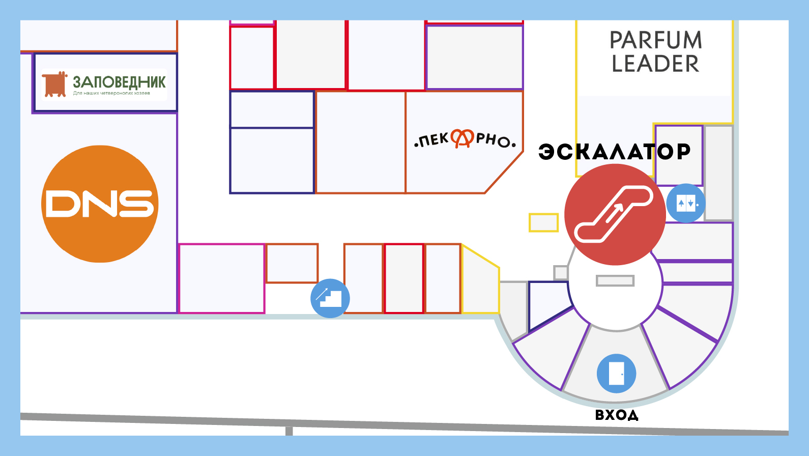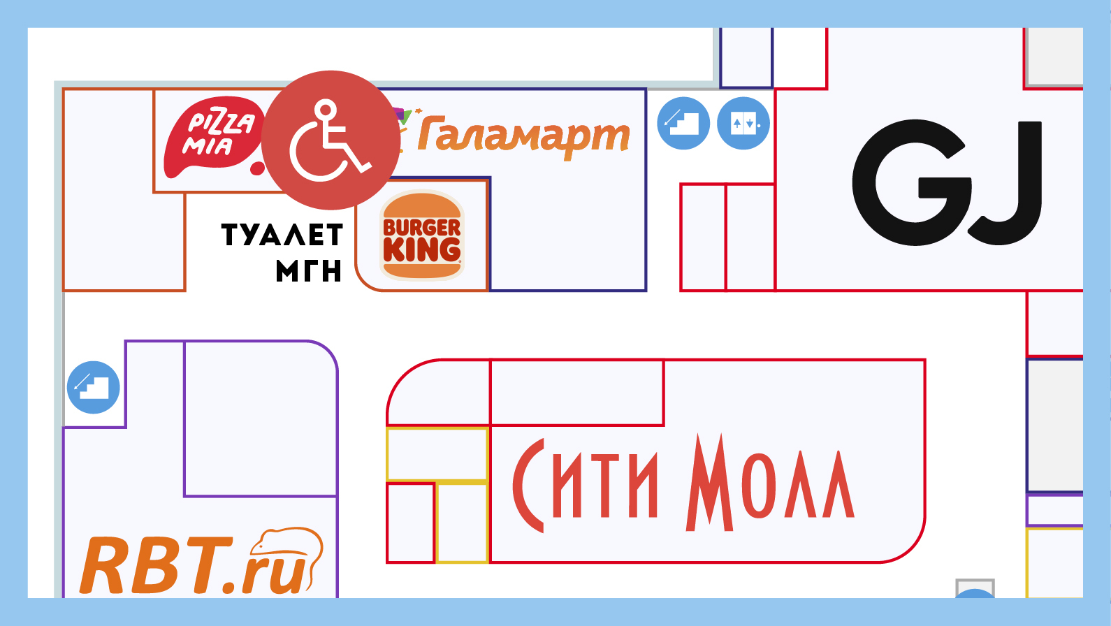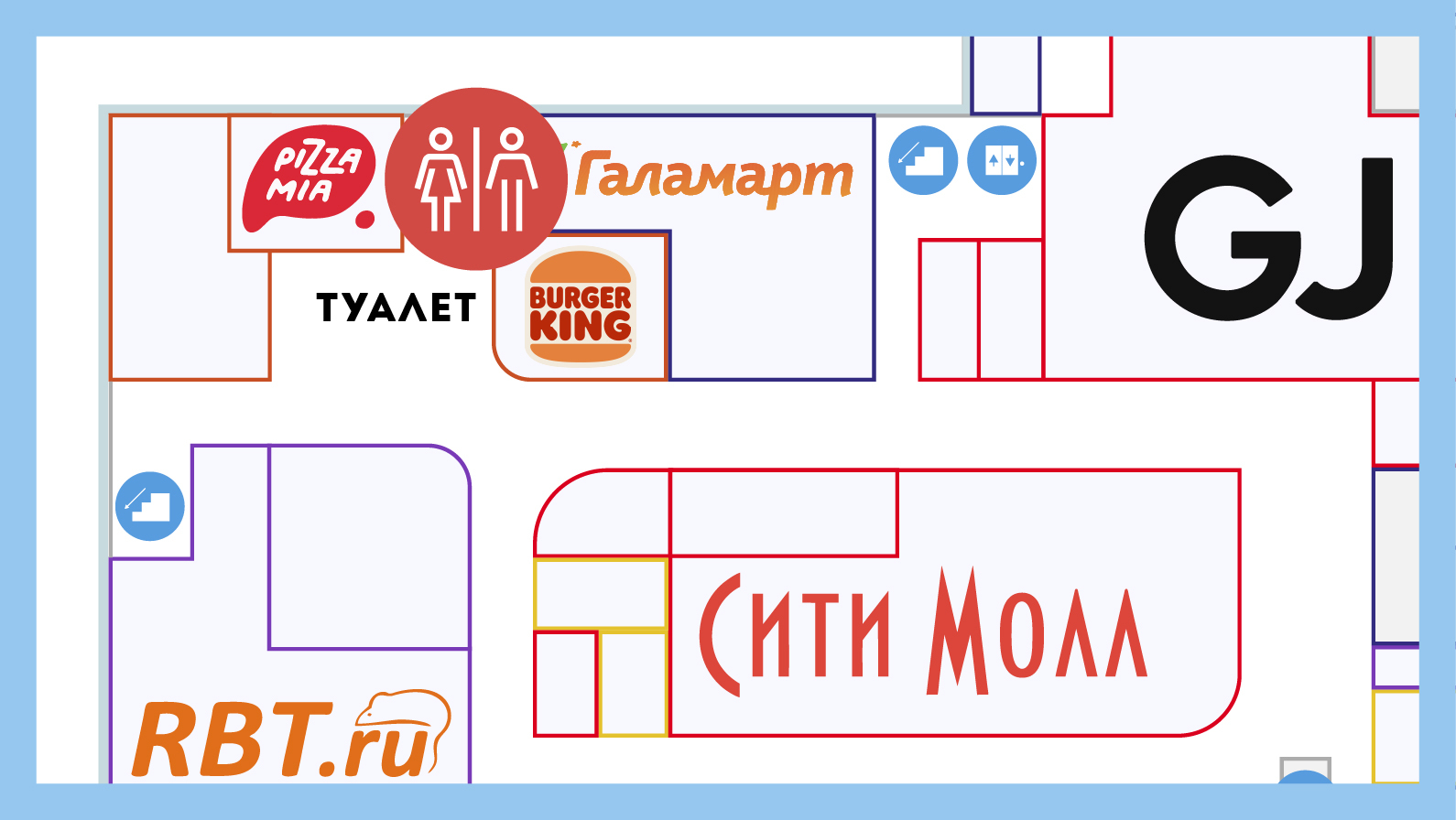 Туалетные комнаты расположены на 2 этаже на фудкорте