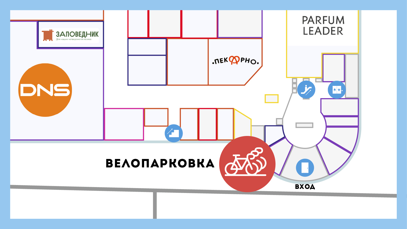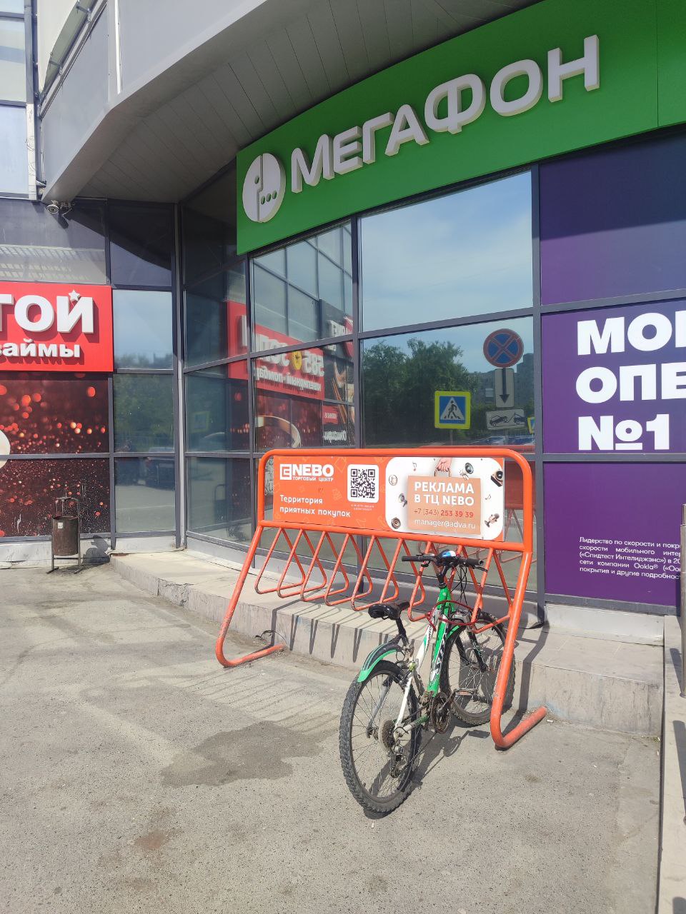 Велопарковка расположена на территории ТЦ NEBO со стороны ул. Ленинградская