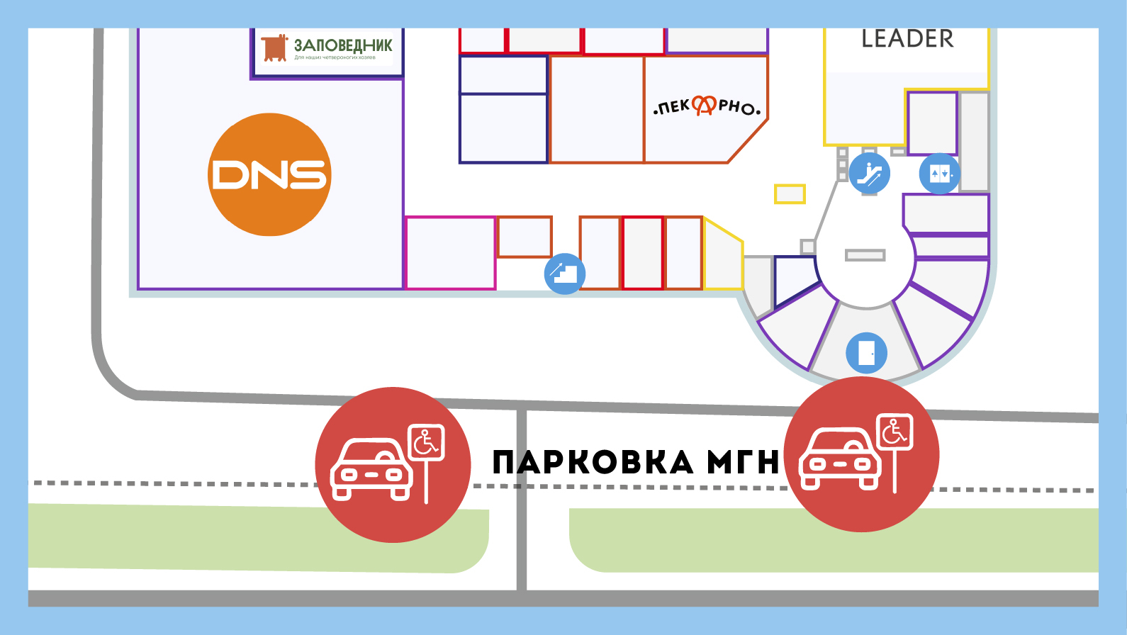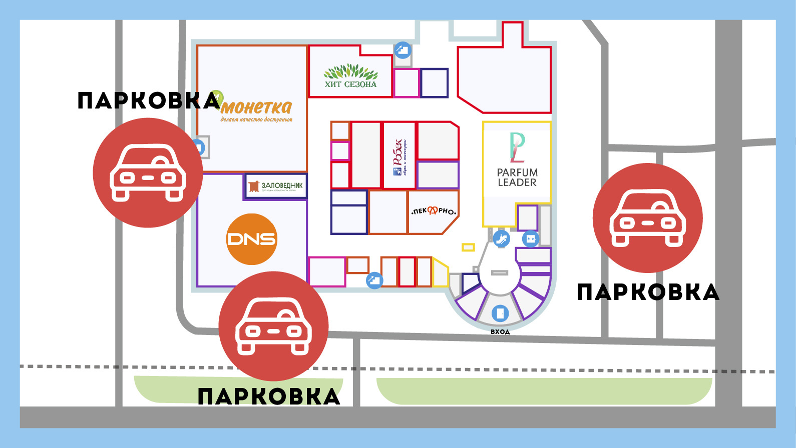 Парковка расположена на территории ТЦ NEBO со стороны ул. Ленинградская